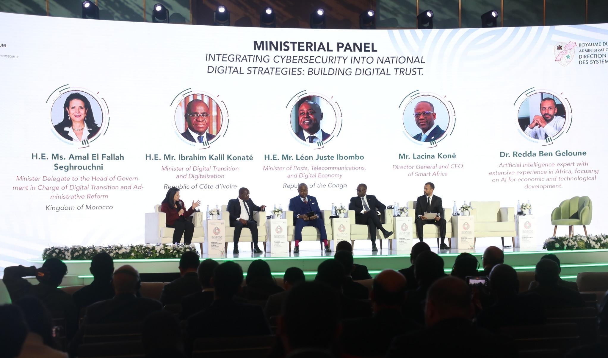 Cette session de dialogue a connu la présence , aux côtés de la ministre, du général El Mostafa Rabii, directeur de la Direction générale de la sécurité des systèmes d'information, le ministre de la transition numérique de la République de Côte d'Ivoire, M. Ibrahim Kalil Konaté, le ministre des postes, des transports et de l'économie numérique de la République du Congo, M. Léon Juste Ibombo, ainsi que le président-directeur général de l'alliance "Smart Africa", M. Lacina Kone.