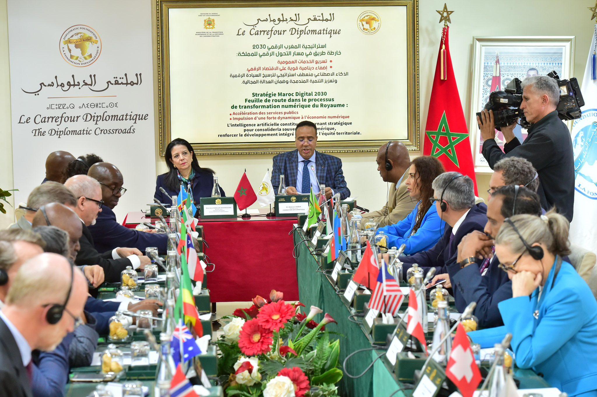 حلت السيدة أمل الفلاح السغروشني، الوزيرة المنتدبة لدى رئيس الحكومة المكلفة بالانتقال الرقمي وإصلاح الإدارة، ضيفة شرف على الدورة 152 من «الملتقى الدبلوماسي»، التي نظمتها المؤسسة الدبلوماسية يوم الخميس 16 أبريل 2026، بحضور عدد من السفراء وممثلي السلك الدبلوماسي المعتمد بالمغرب. وشكل هذا الموعد فرصة للحوار وتبادل الرؤى مع شركاء دوليين حول التحولات الجارية، وكذا رهانات التعاون في مجالي الرقمنة وتحديث الأداء العمومي.
